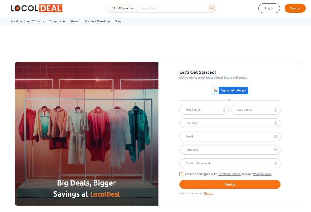 Check out Local Deals and use two types of signup options, like as a customer or a sign up as business.